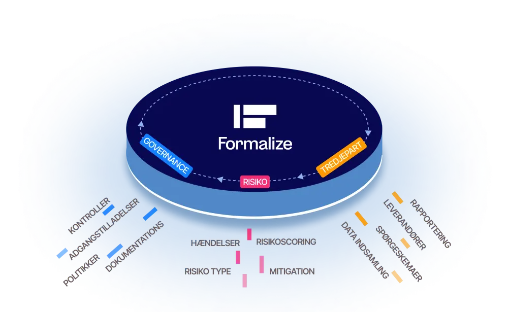 Formalize giver en omfattende løsning til styring af compliance; alt fra risiko- og hændelsesstyring til styring af compliancedata i en enkelt, integreret platform. Med indbyrdes forbundne funktioner til at strømline og automatisere compliance-workflows tilbyder Formalize komplet tilpasning til dine specifikke krav, hvilket sikrer en problemfri og effektiv compliance-styringsproces.