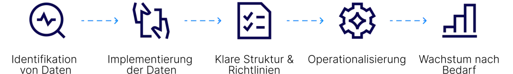 Wir begleiten Sie durch die gesamte DORA-Erfahrung – von der Datenidentifikation und -implementierung bis hin zur Einrichtung der Software und dem langfristigen Support. Zu verstehen, was zu tun ist und wie man es praktisch umsetzt, ist ein wichtiger Teil der Implementierung von DORA. Wir haben einen vollständig geführten Prozess für Sie vorbereitet.