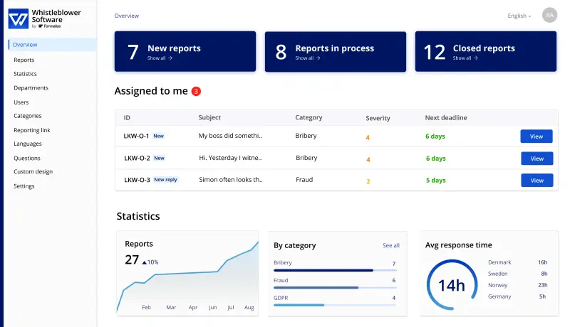 Comply with EU whistleblowing laws and save time with a system that is secure, customizable and easy to use.