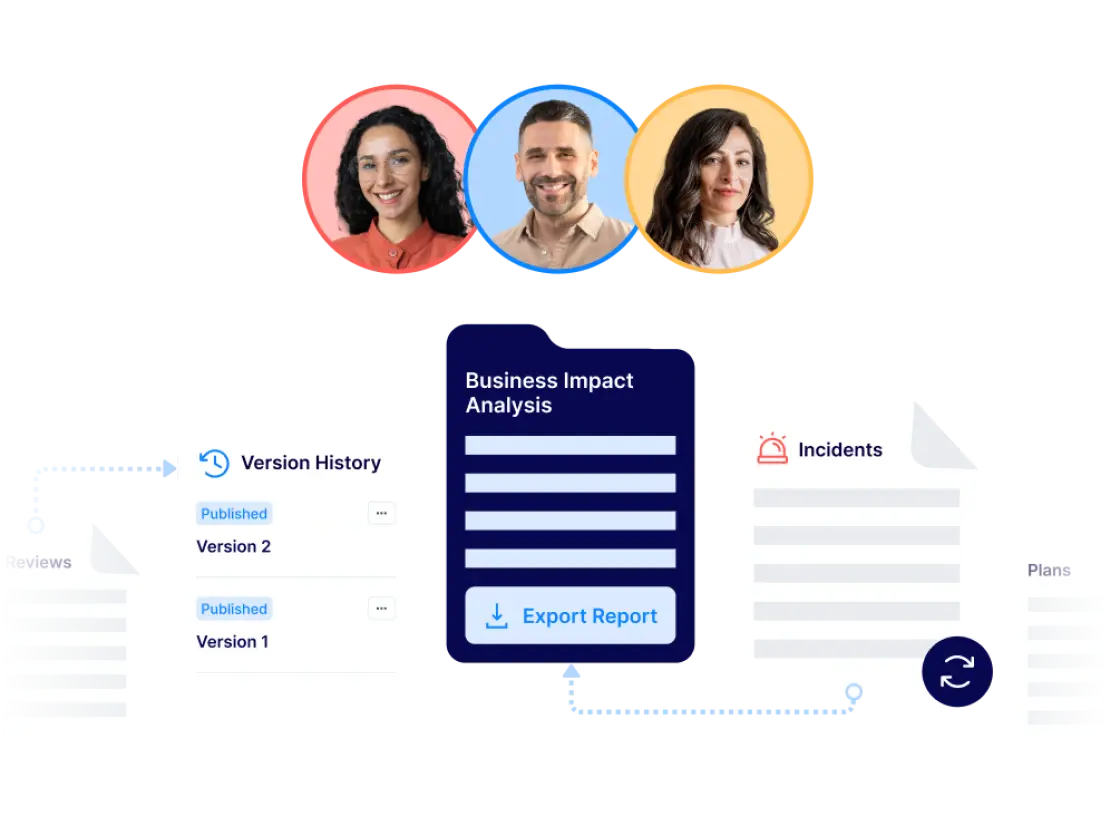All BIAs, plans, tests, incidents, and reviews are current, traceable, versioned and reportable on demand for continuuous compliance.