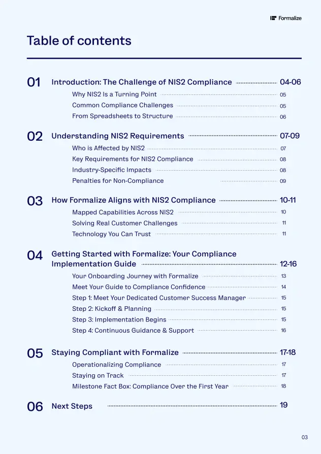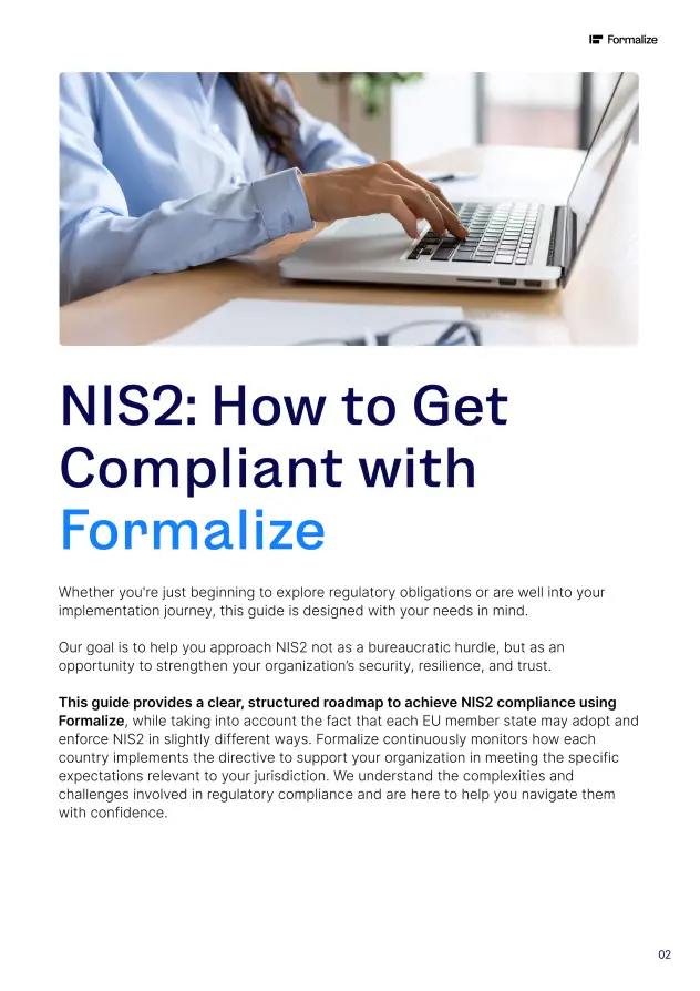 This guide provides a clear, structured roadmap to achieve NIS2 compliance using Formalize,