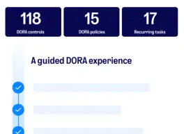 Obtenga el comienzo ideal siguiendo nuestra experiencia guiada de DORA, que incluye 118 controles, 15 políticas, ejemplos de riesgos y tareas relacionadas con la implementación y el mantenimiento de DORA.