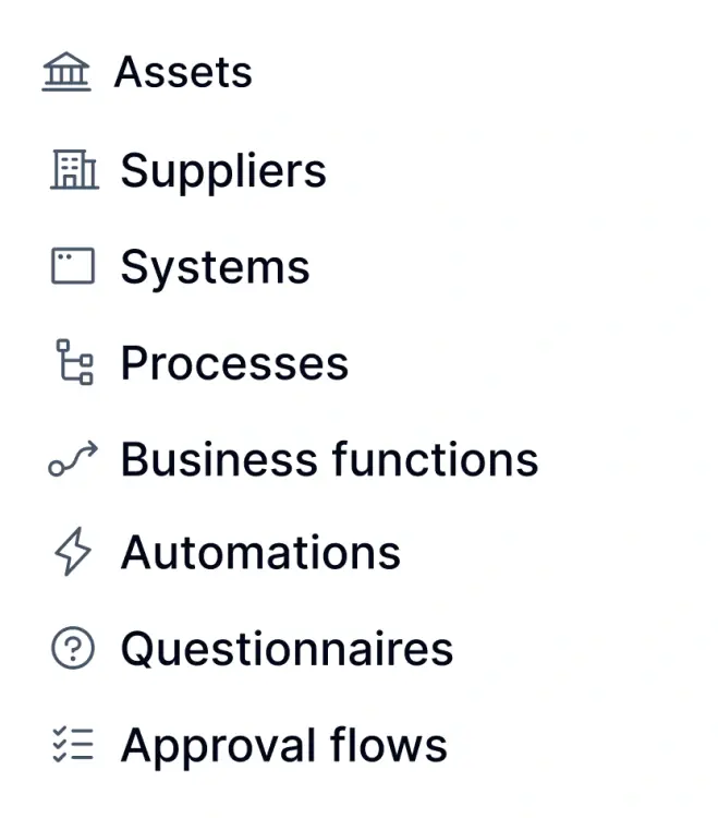 A clear view of dependencies is essential for GRC. Formalize connects assets, suppliers, systems and processes so you can understand how risks propagate and where controls are required.