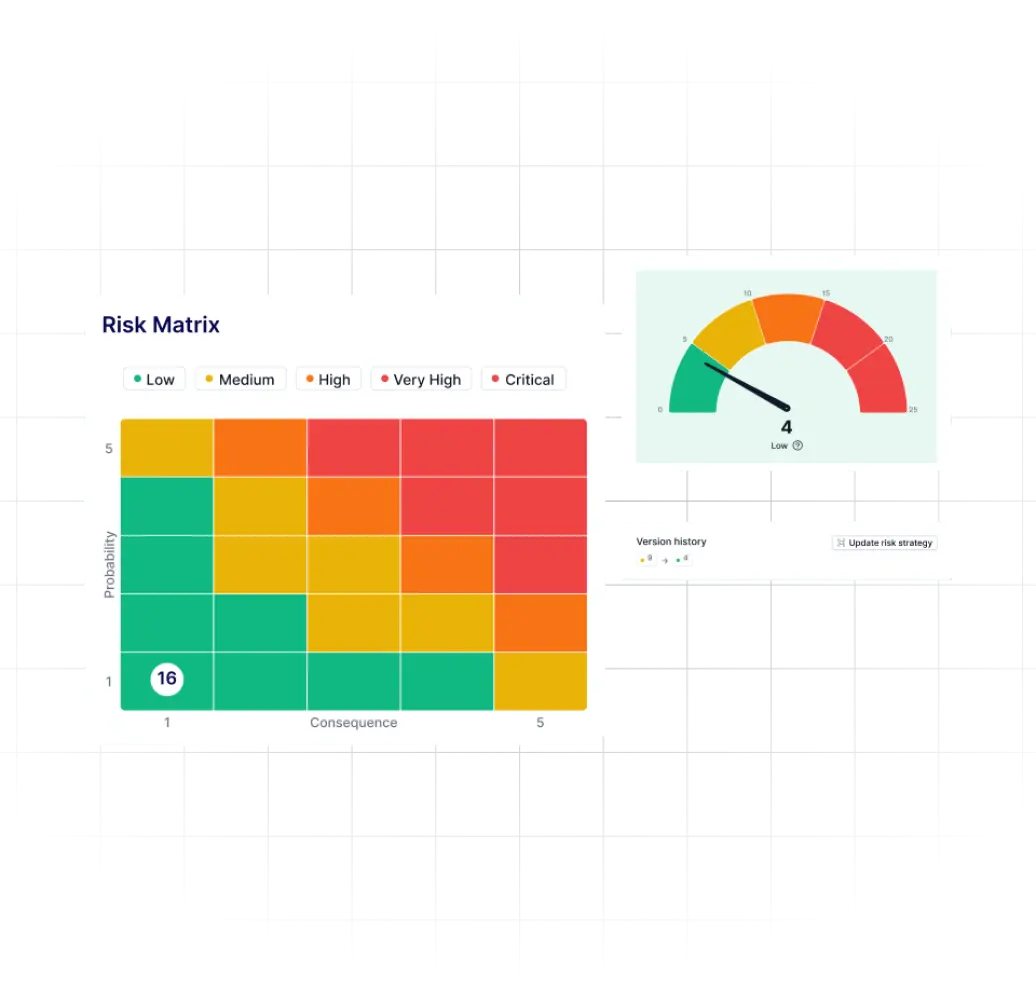 Configure matrices de riesgo, fórmulas de puntuación y modelos de cálculo para evaluar de forma coherente el riesgo inherente, residual y potencial.