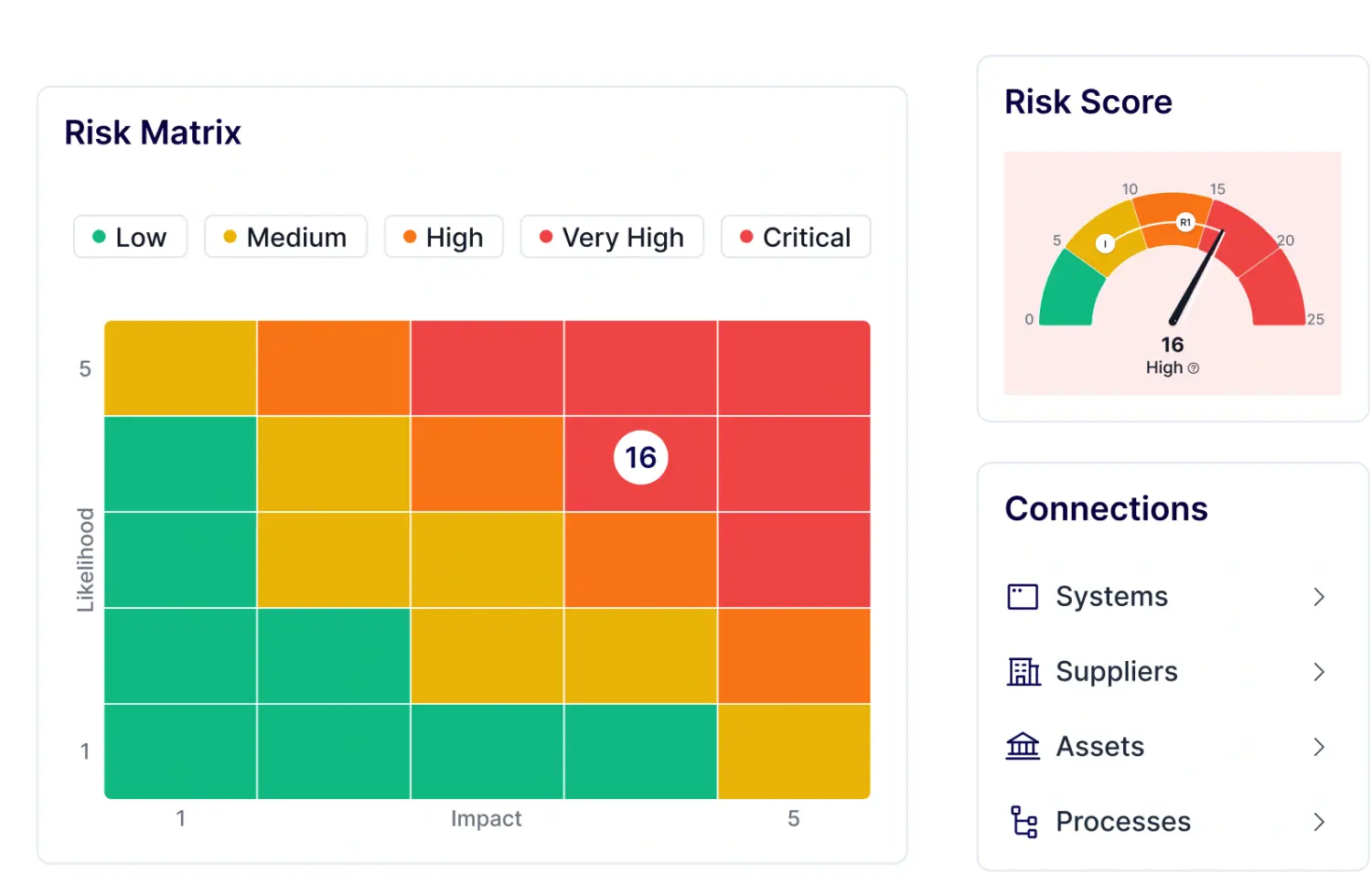 Vincule los riesgos con sus proveedores, sistemas, activos y procesos de negocio para identificar dónde reside su exposición real.
