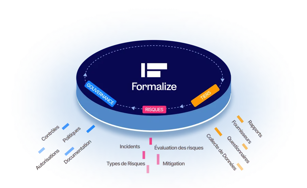 Formalize fournit une solution complète pour gérer la conformité ; allant de la gestion des risques et des incidents à la gestion des données de conformité dans une plateforme unique et intégrée. Avec des fonctionnalités interconnectées de rationalisation et d'automatisation des flux de travail de conformité, Formalize offre une adaptation personnalisée complète à vos besoins, garantissant un processus de gestion de la conformité transparent et efficace.