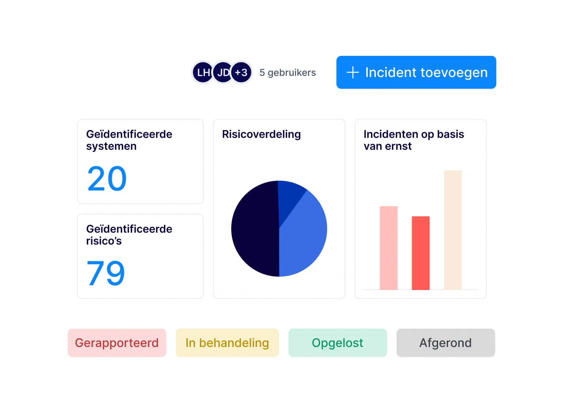 Eenvoudige documentatie van al uw netwerk- en informatiegerelateerde incidenten. Krijg een duidelijk overzicht van uw incidentmanagement, van planning en voorbereiding tot bewijs en rapportextractie.