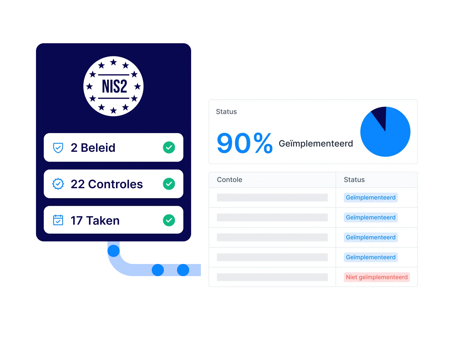 Maak de ideale start door onze begeleide NIS 2-ervaring te volgen, die kritieke controles, beleidsregels, risicovoorbeelden en taken met betrekking tot de implementatie en het onderhoud van NIS 2 omvat.