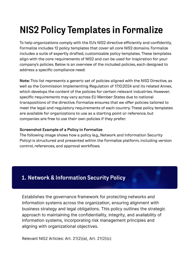 Modelos de políticas para conformidade com o NIS2